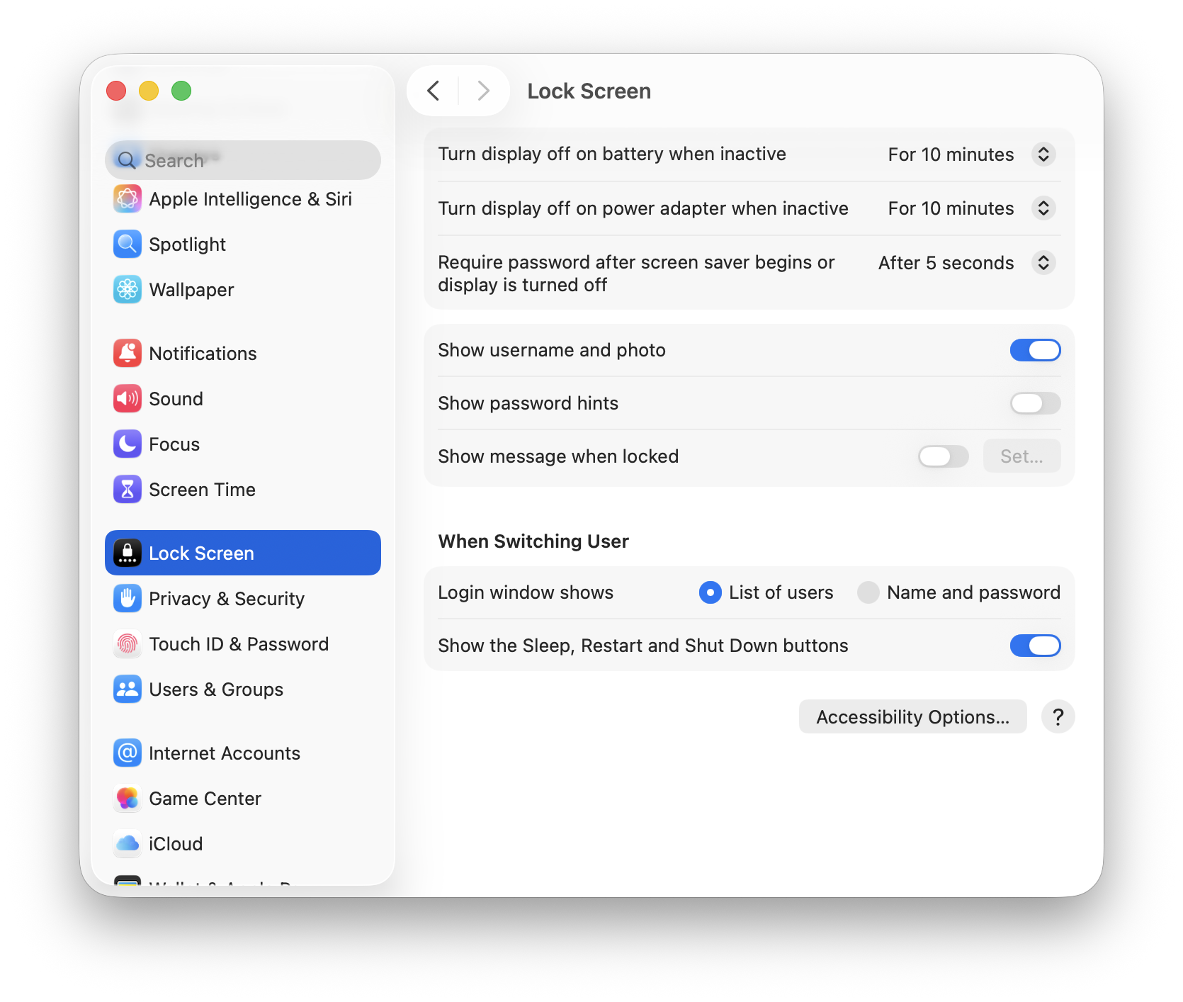 In System Settings, under Lock Screen, you can control when the Screen Saver starts and when the display is turned off after a period of inactivity.